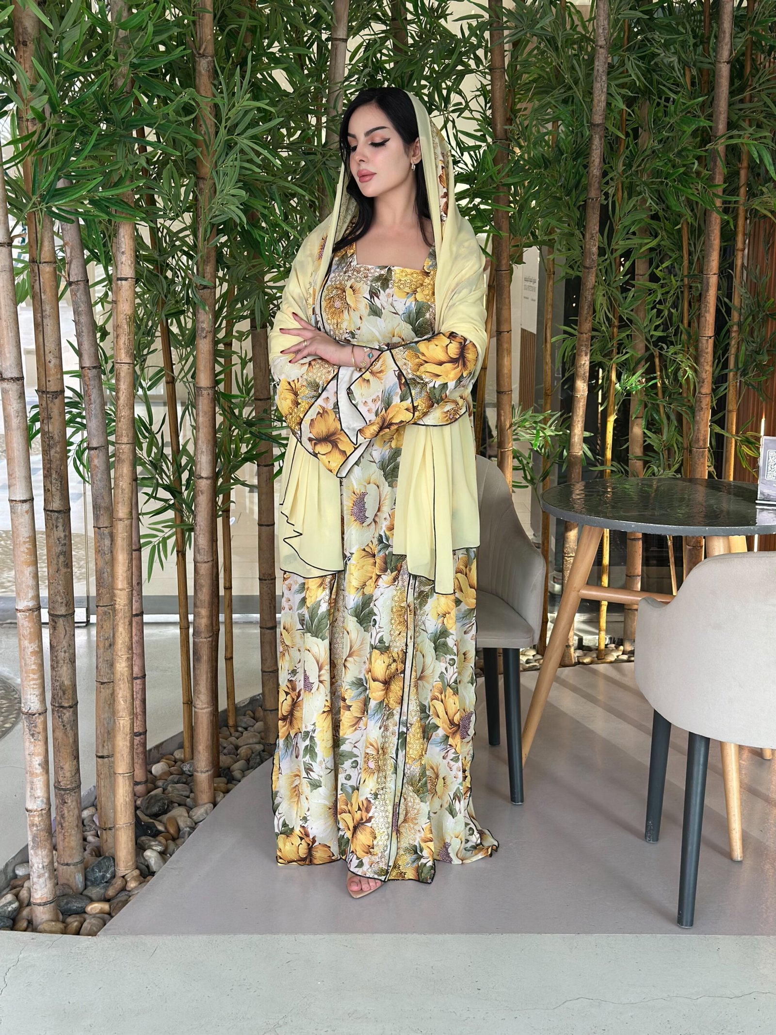 دراعة شيفون بالفصوص و شيلة دجى الليل تركيب فصوص بدون تطريز و القصة كلوش