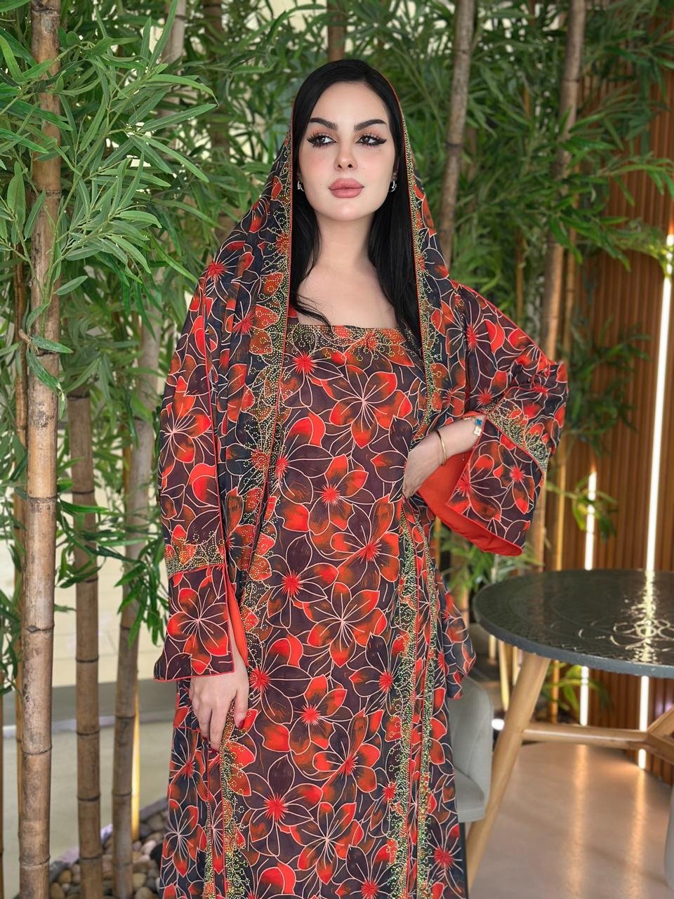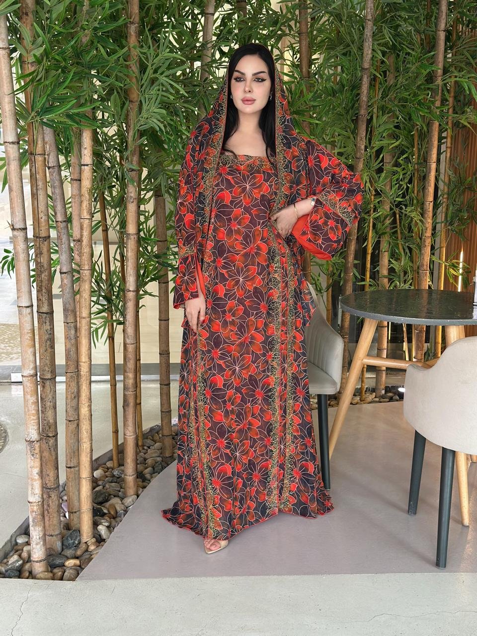 دراعة من الشيفون بالفصوص و الشيلة دجى الليل تركيب فصوص بدون تطريز و القصة كلوش