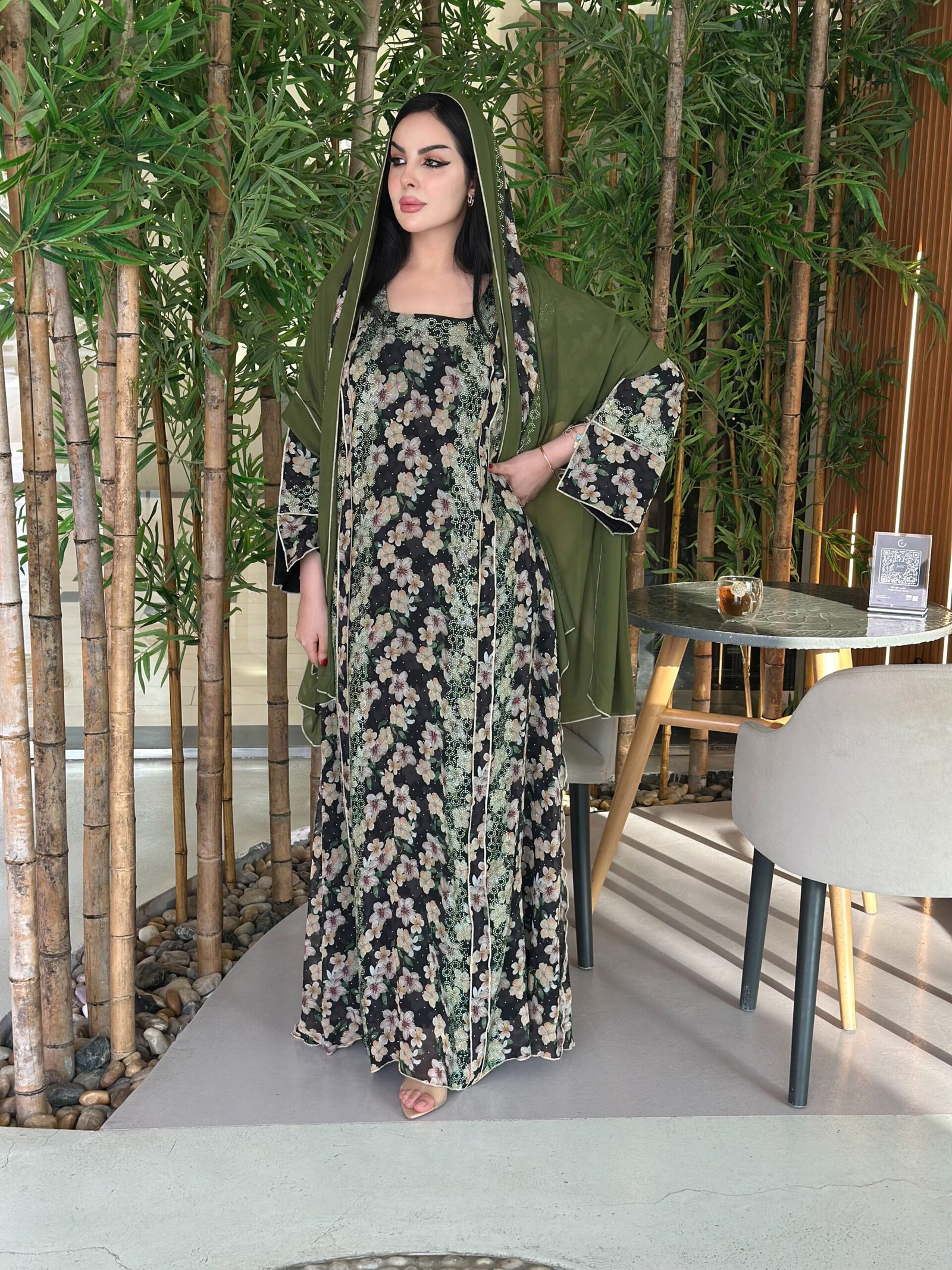 دراعة من الشيفون بالفصوص و الشيلة دجى الليل تركيب الفصوص بدون تطريز و القصة كلوش