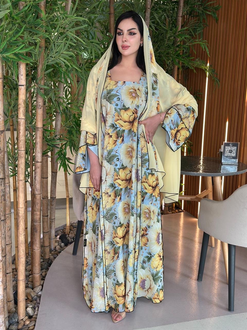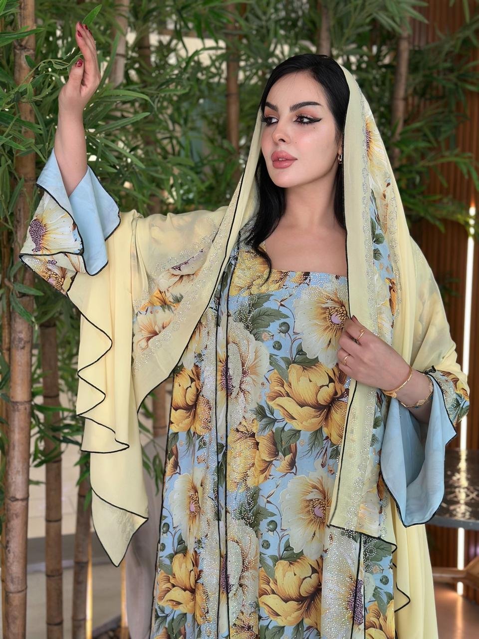دراعة من الشيفون بالفصوص و الشيلة دجى الليل تركيب فصوص بدون تطريز و القصة كلوش